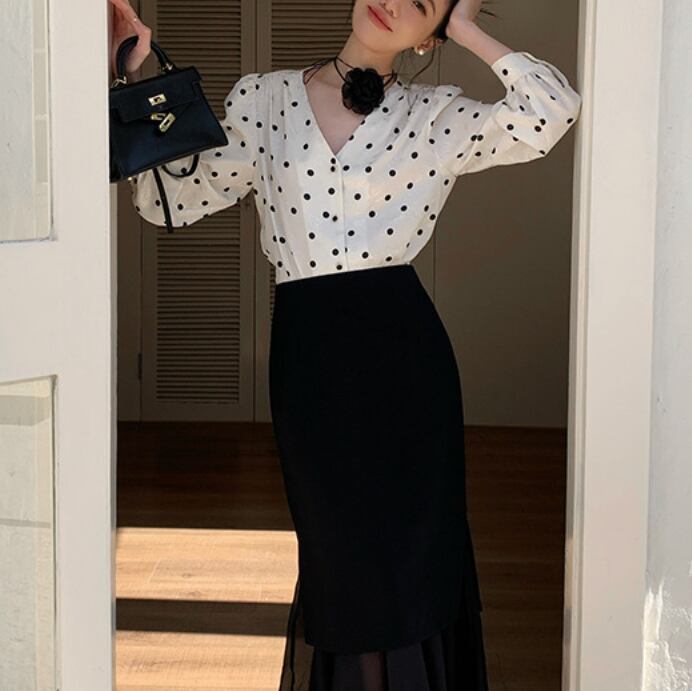 ふわっとした袖口とドットのプリントが女性らしさを引き立てる一枚♡