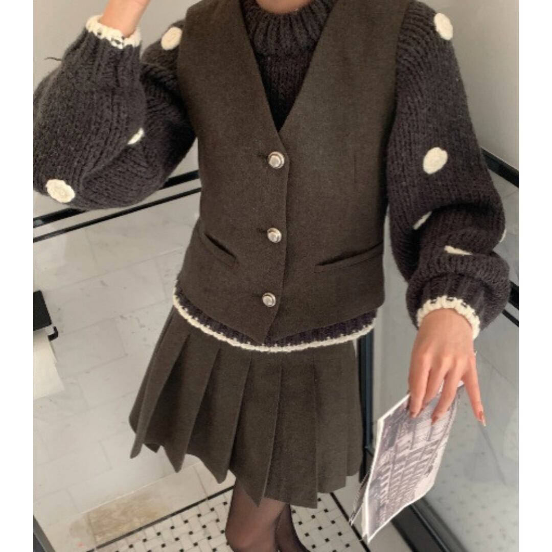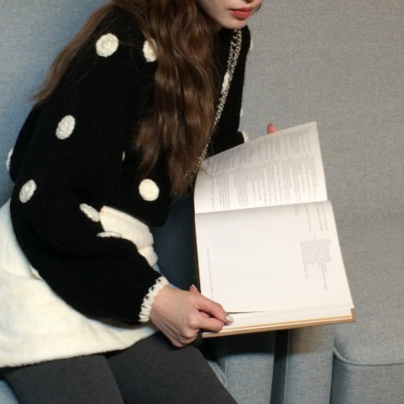 Chic Textured Polka Dot Knit Sweater(ブラック・グレー)