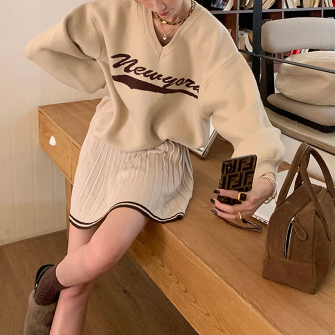 「Newyork」ロゴが都会的なムードのセットアップ♡スカート裾のラインで遊び心をプラス。