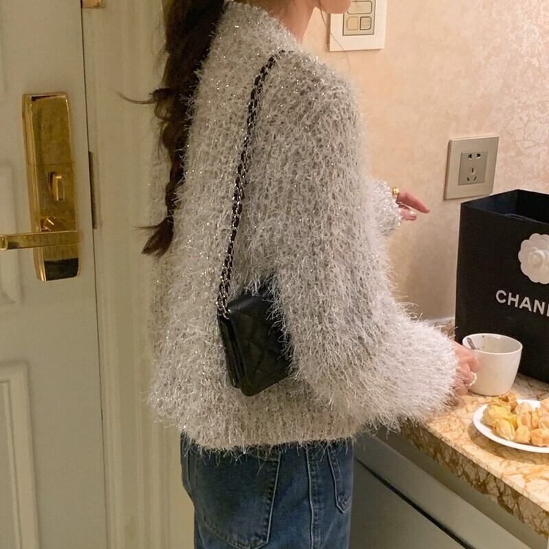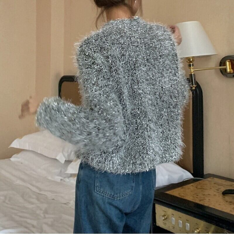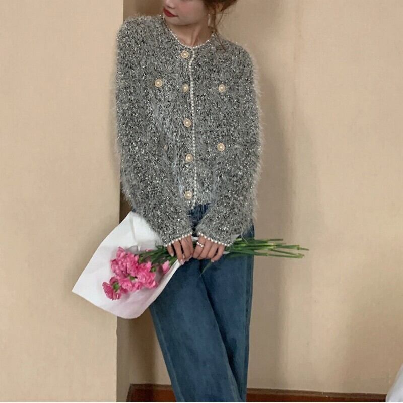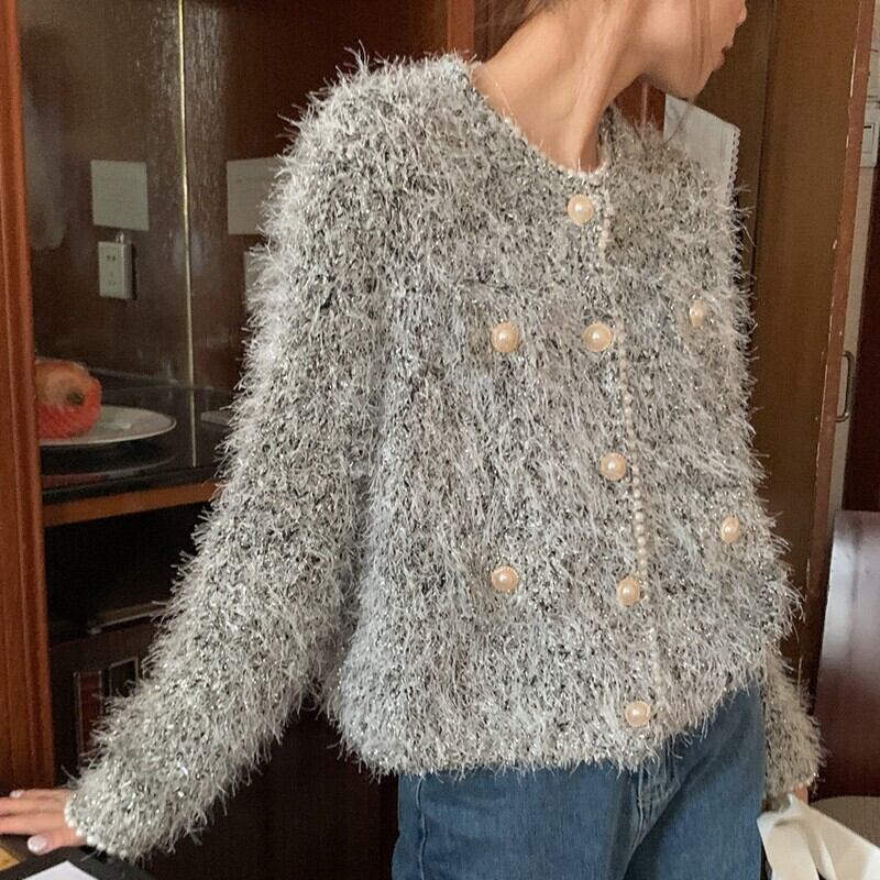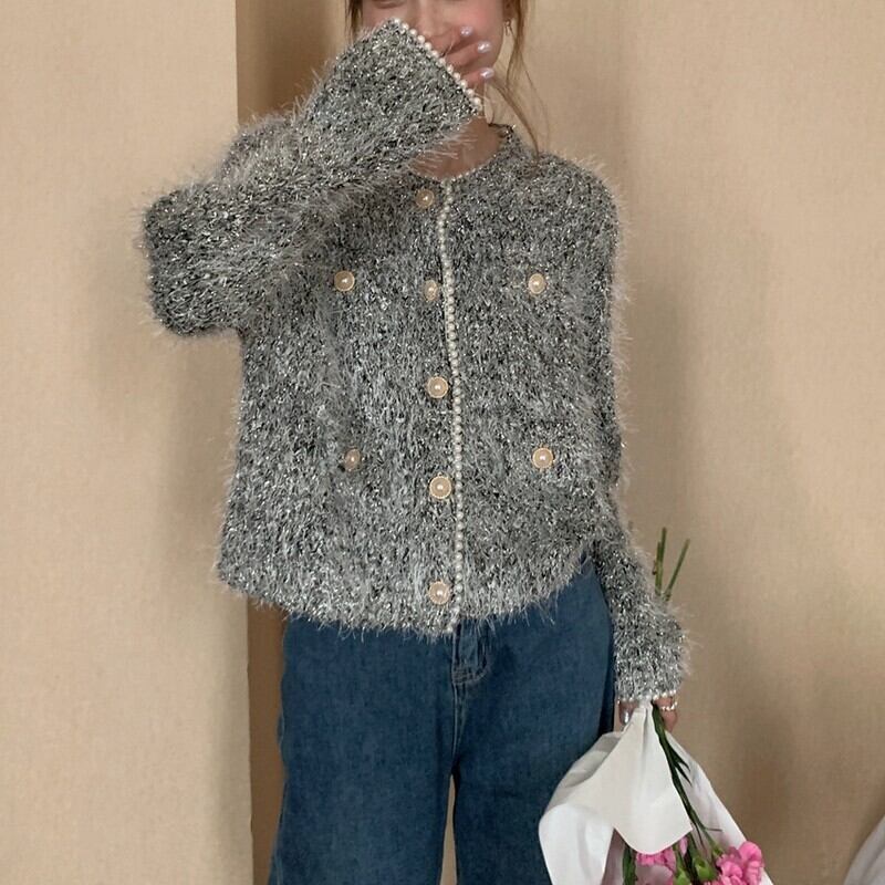 Shaggy knit pearl cardigan