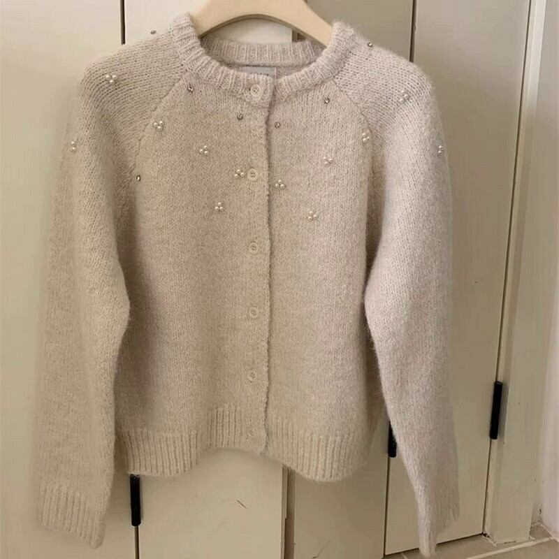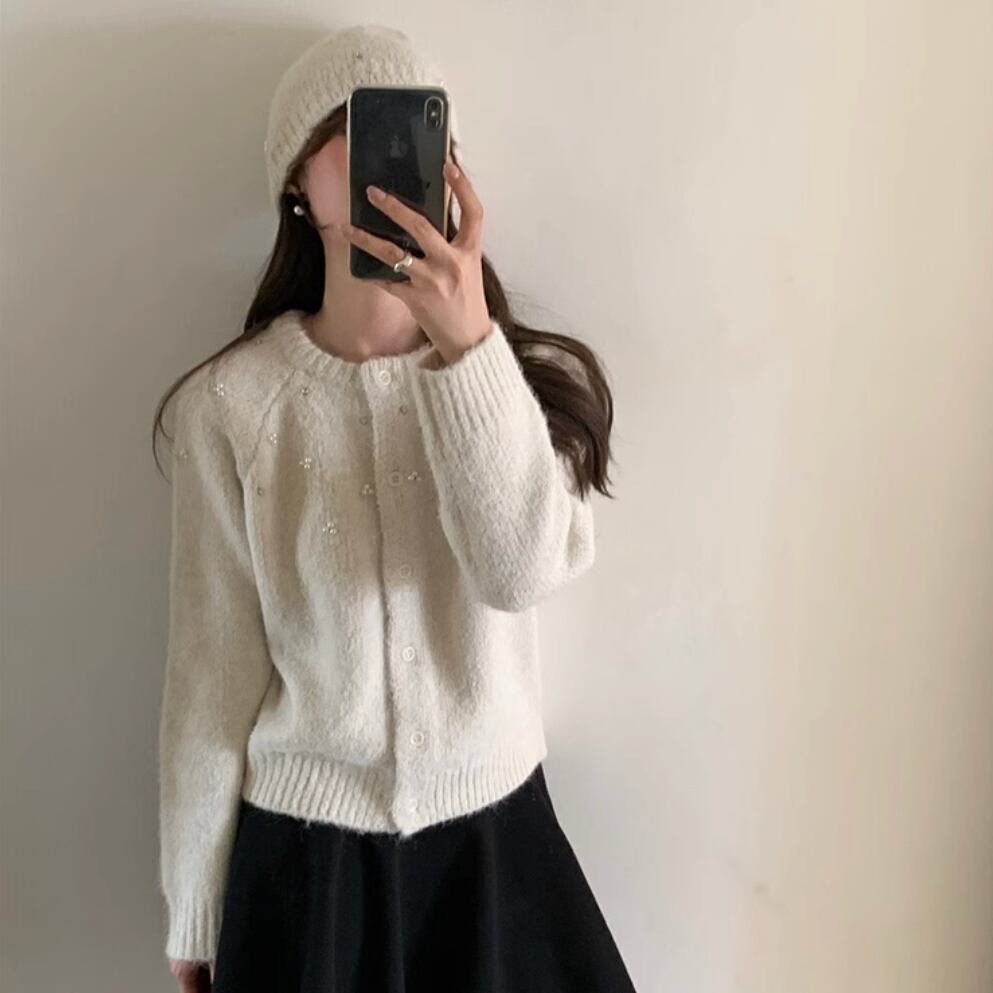Beaded cardigan & Beanie set(3color)