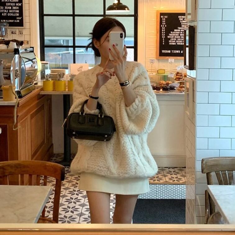 ざっくり編まれたケーブルニットが女性らしさを演出してくれるOversize cable knit。
